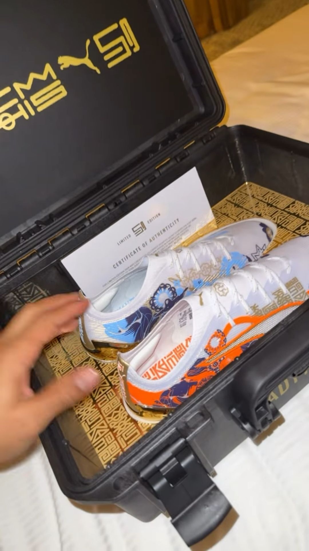 Op zijn hotelkamer in Zeist onthulde Memphis via Instagram de inhoud van het koffertje aan zijn ruim 20 miljoen volgers. Het bleek een bijzonder cadeau te zijn: een paar limited edition voetbalschoenen van zijn sponsor Puma. De schoenen werden speciaal ontworpen ter ere van zijn record als topscorer aller tijden van het Nederlands elftal, dat hij vorige interlandperiode vestigde met zijn 51ste doelpunt.